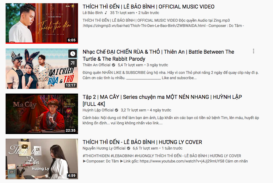 Vừa qua, "cuộc chiến" trên top trending đã khiến người hâm mộ không khỏi bất ngờ khi sản phẩm "Thích Thì Đến" của Lê Bảo Bình chỉ vừa lên sóng đã "lật đổ" vị trí "ngôi vương" của Hoàng Thuỳ Linh với MV "Kẻ Cắp Gặp Bà Già" lẫn "Cố Giang Tình" của nhóm nhạc X2X. Trong suốt khoảng thời gian đó, ca khúc "Thích Thì Đến" đã thực sự "xâm chiếm" tab thịnh hành Youtube Việt Nam khi từ sản phẩm cover, phiên bản karaoke, remix... đều đồng loạt đứng thứ hạng cao trên top trending.