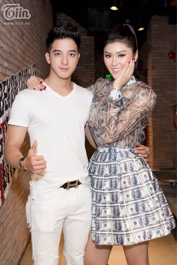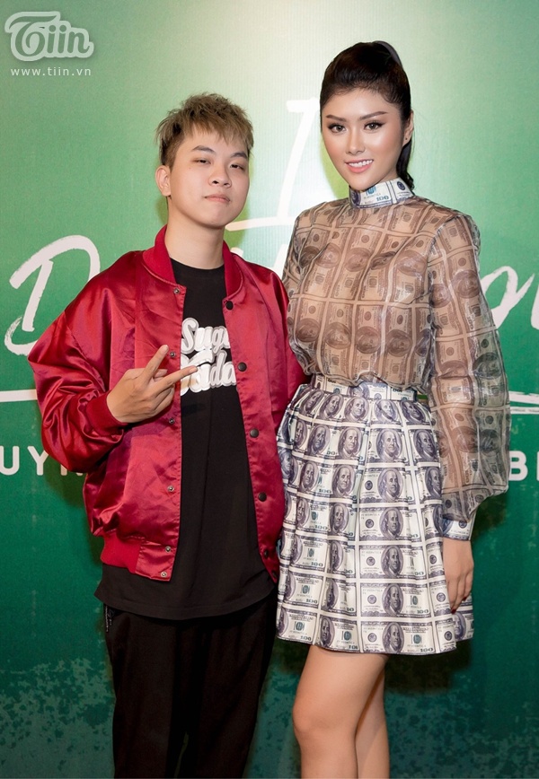 Yến Trang diện trang phục trẻ trung, cá tính đến chúc mừng Huỳnh Tiên.