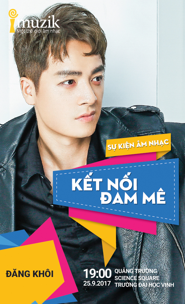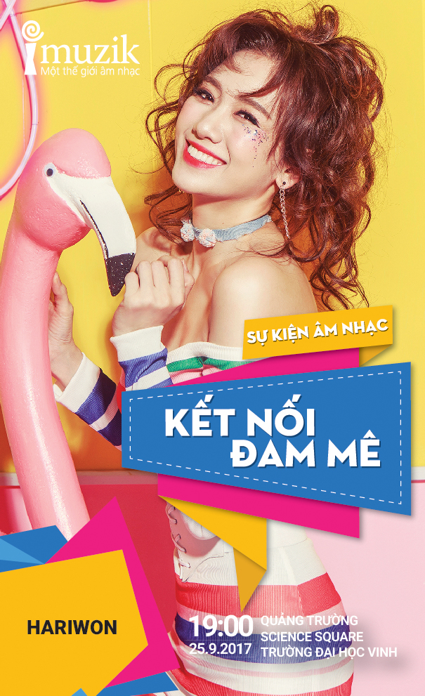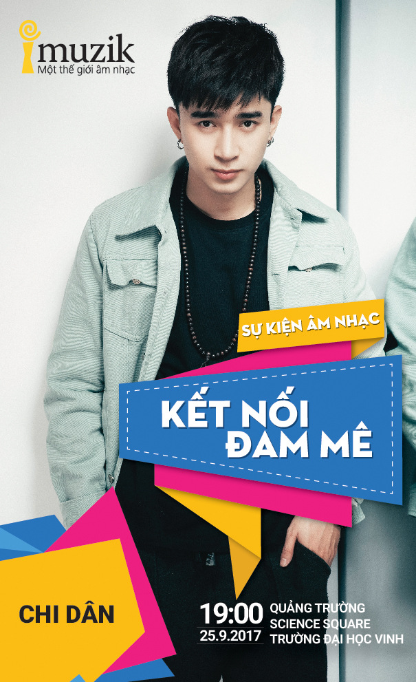 Vào lúc 19h30 ngày 25/9/2017, tại Đại học Vinh, tỉnh Nghệ An sẽ diễn ra đêm nhạc Imuzik - kết nối đam mê với sự tham gia của nhiều tên tuổi nghệ sĩ đang hot như: Chi Dân, Hari Won, Nhóm OPlus, Đăng Khôi và vũ đoàn, DJ.TEA…