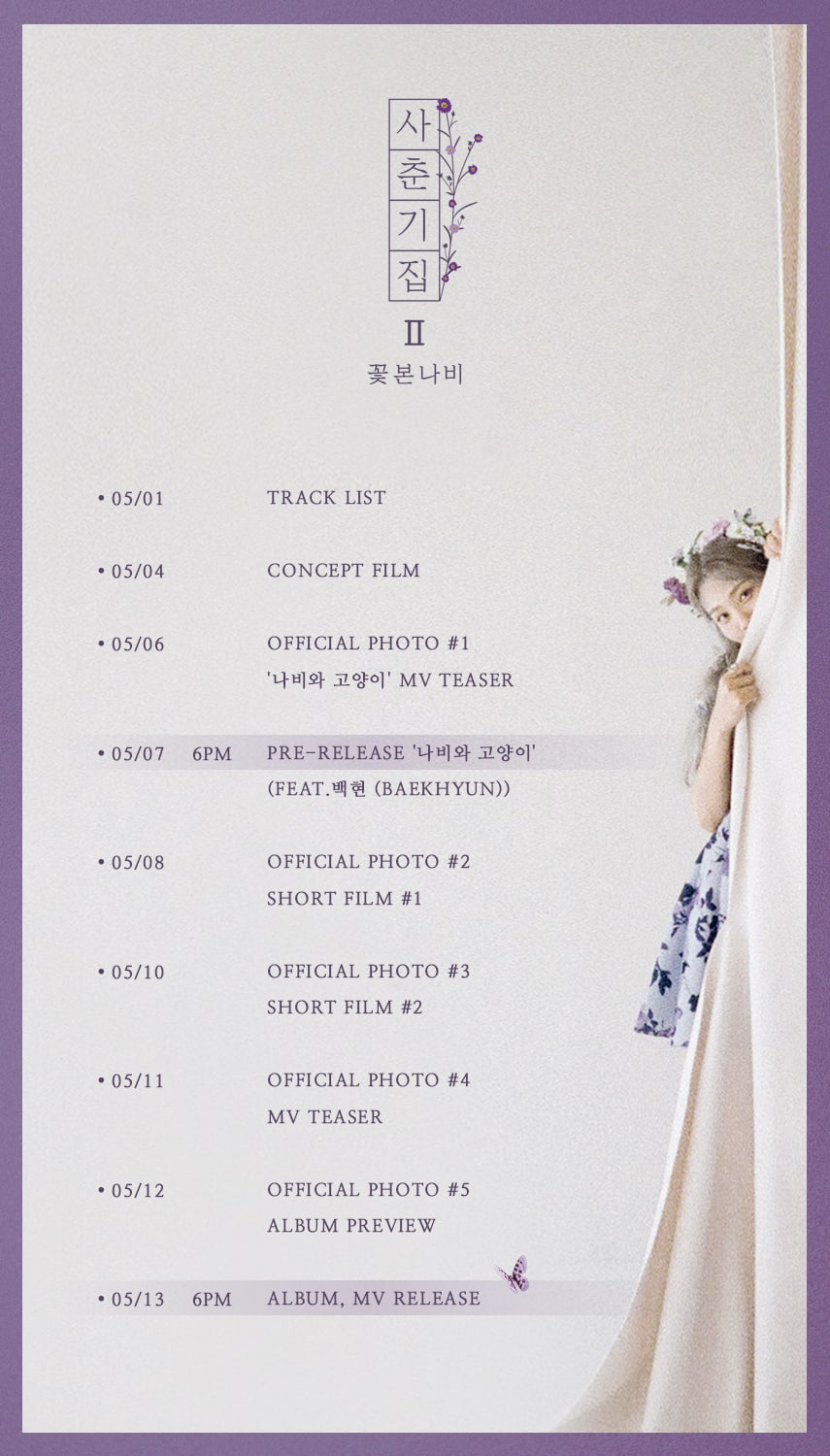 Mới đây nhất, sáng 29/4, "quái vật nhạc số" BOL4 đã bất ngờ tiết lộ về màn comeback của cô nàng, lần đầu sau khi một thành viên rời nhóm. Album và MV ca khúc chủ đề sẽ được phát hành vào ngày 13/5 tới. Tuy nhiên, điều đáng chú ý nhất là ca khúc "mở đường" cho album có sự xuất hiện của Baekhyun (EXO). Như vậy, trước thềm comeback solo vào khoảng cuối tháng 5 thì Baekhyun sẽ tham gia vào sản phẩm kết hợp cùng BOL4 có tên "Butterfly and Cat". Ca khúc này sẽ được ra mắt vào ngày 7/5.