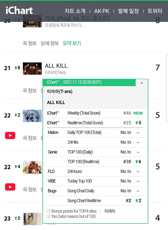 Hiện tại, cả 2 ca khúc ALL KILL và TIKI TAKA đều lần lượt lọt vào iCHART với thứ hạng 21 và 25. Đặc biệt, 2 ca khúc này đều xếp hạng 1 và 2 trên iTunes Việt Nam.