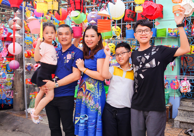 Én bạc 2006 Xuân Hiếu và ông xã doanh nhân đưa 3 con đi dạo phố đèn lồng, tổ chức các hoạt động mừng Trung thu tại nhà.